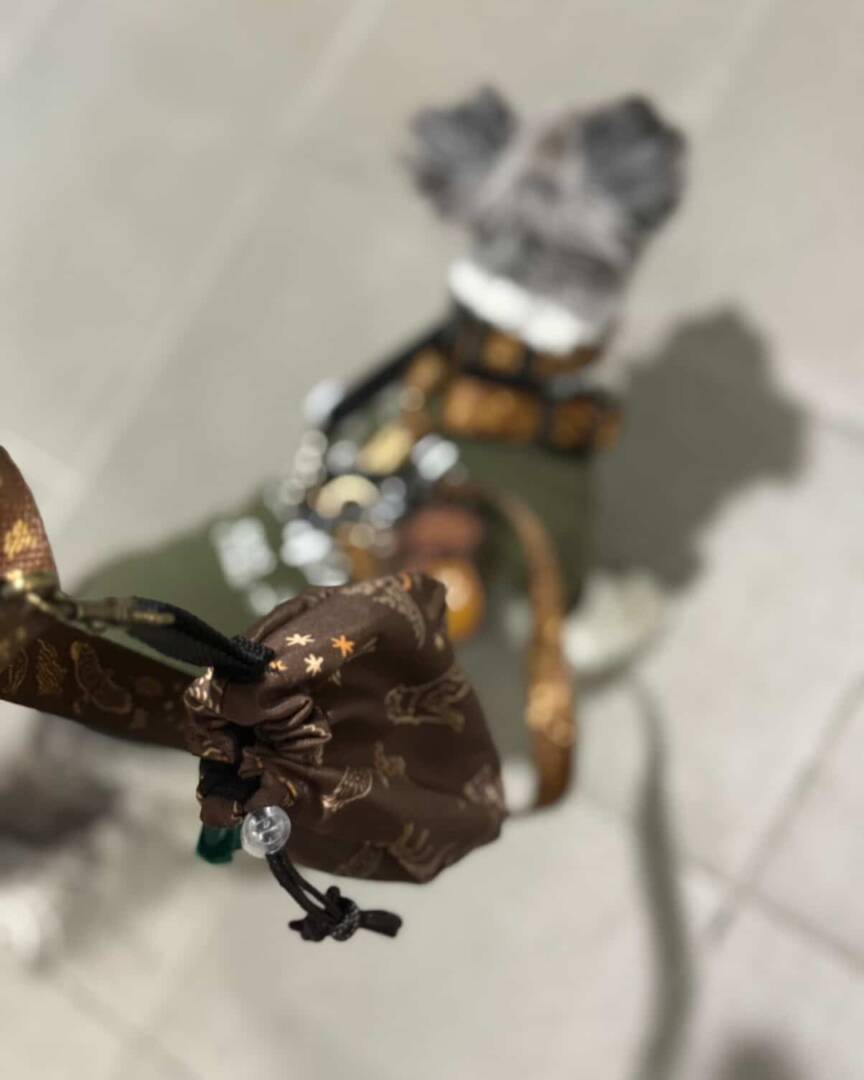 Etui na kupoworki jest nieodłącznym elementem psich spacerów. Możecie je podpiąć do półkółka umieszczonego przy smyczy, do szlufki od spodni lub nerki, przy pomocy mosiężnego karabińczyka. Idąc w myśl ekologii, etui zostało zaprojektowane z materiałów, które pozostały nam z szycia bezuciskowych szelek i ortopedycznych legowisk dla waszych czworonogów. Dzięki temu, możecie cieszyć się wyjątkowym designem, a jednocześnie mieć świadomość, że zakupiony produkt pozwolił w piękny i praktyczny sposób wykorzystać resztki tkaniny.