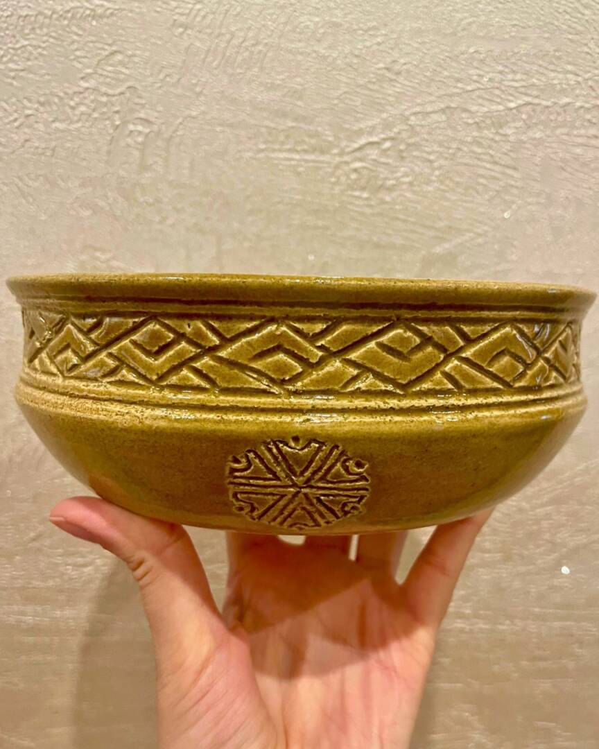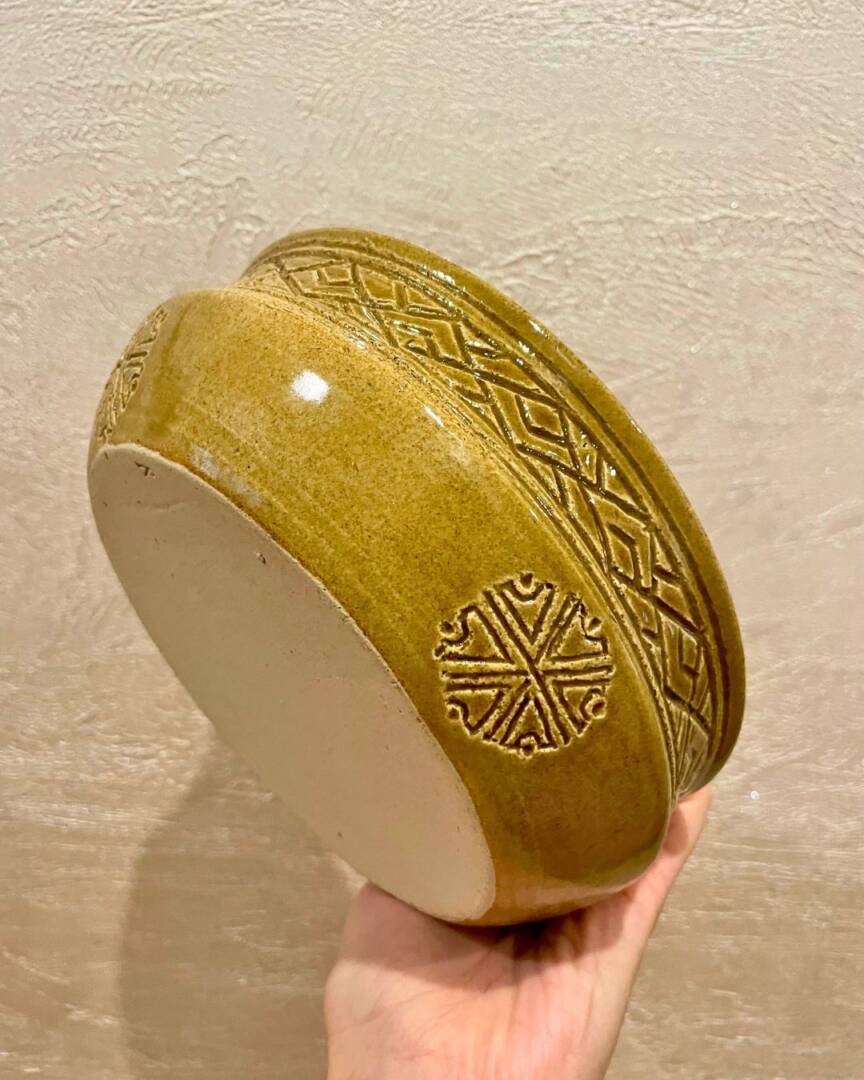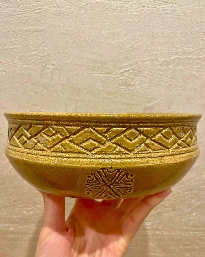 Ręcznie wykonana miska ceramiczna, która nawiązuje zdobieniem do znalezisk archeologicznych, jest równie piękna, jak i praktyczna. W sam raz na wyjątkowy prezent. Należy pamiętać, że ze względu na charakter przedmiotu zdobionego ręcznie, finalny produkt może się nieco różnić kolorem, od tego przedstawionego na zdjęciu.