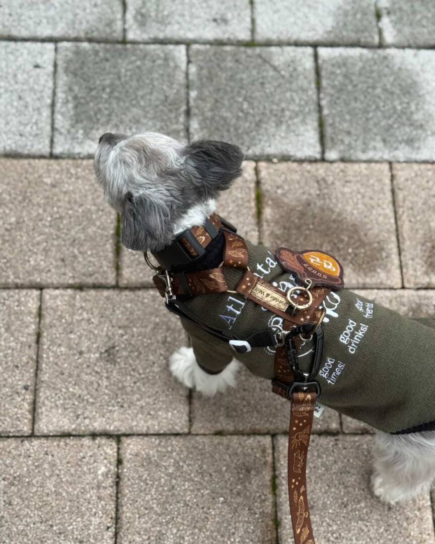 To najbardziej optymalny typ szelek, który pozwala psu na swobodny ruch i będzie odpowiedni nawet na wielogodzinną wyprawę. Warunek jest jeden – prawidłowo dobrany rozmiar. Nasz model ma potrójną regulację, jest wytrzymały, a jednocześnie lekki i wygodny. Został wykonany z taśmy, odpowiedniej zarówno dla psów gładkowłosych (nie obciera wrażliwej skóry czworonoga), jak również psiaków z długą sierścią (nie filcuje i nie kosmaci szaty). Komplet można wzbogacić o stylizowaną mosiężną adresatkę, która idealnie nadaje się, aby wygrawerować na niej dane psiego opiekuna. Bogata kolorystyka i unikalne wzornictwo sprawiają, że każdy znajdzie coś dla siebie.