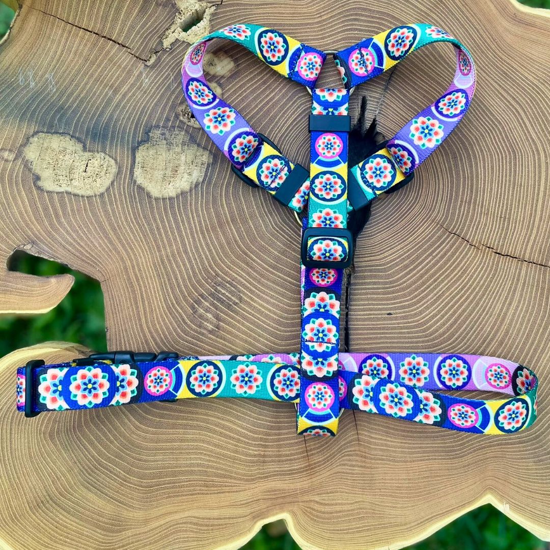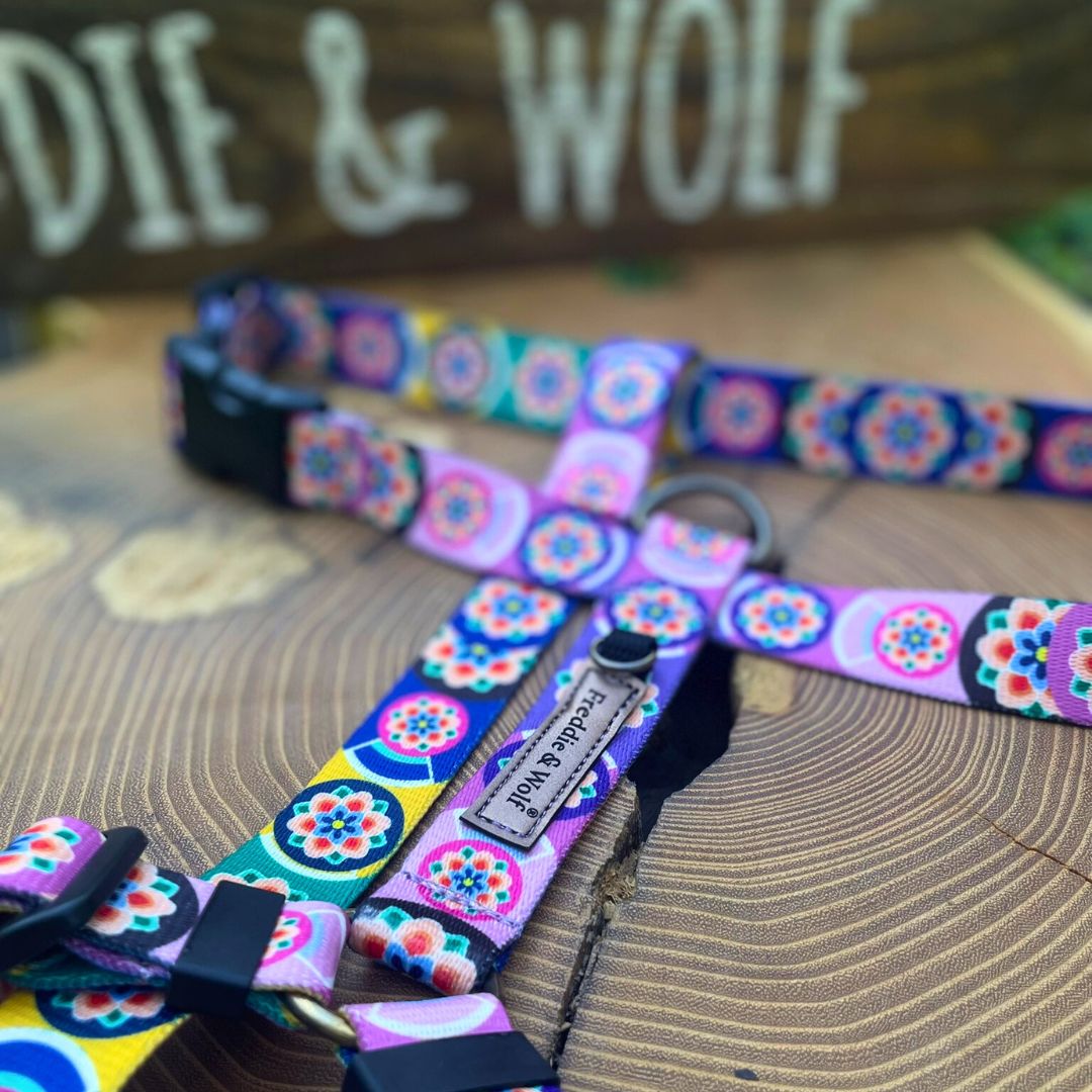 To najbardziej optymalny typ szelek, który pozwala psu na swobodny ruch i będzie odpowiedni nawet na wielogodzinną wyprawę. Warunek jest jeden – prawidłowo dobrany rozmiar. Nasz model ma potrójną regulację, jest wytrzymały, a jednocześnie lekki i wygodny. Został wykonany z taśmy, odpowiedniej zarówno dla psów gładkowłosych (nie obciera wrażliwej skóry czworonoga), jak również psiaków z długą sierścią (nie filcuje i nie kosmaci szaty). Komplet można wzbogacić o stylizowaną adresatkę, która idealnie nadaje się, aby wygrawerować na niej dane psiego opiekuna. Bogata kolorystyka i unikalne wzornictwo sprawiają, że każdy znajdzie coś dla siebie.